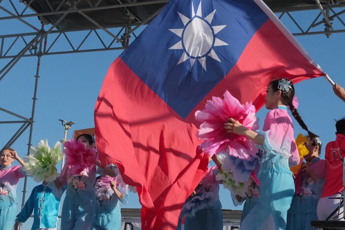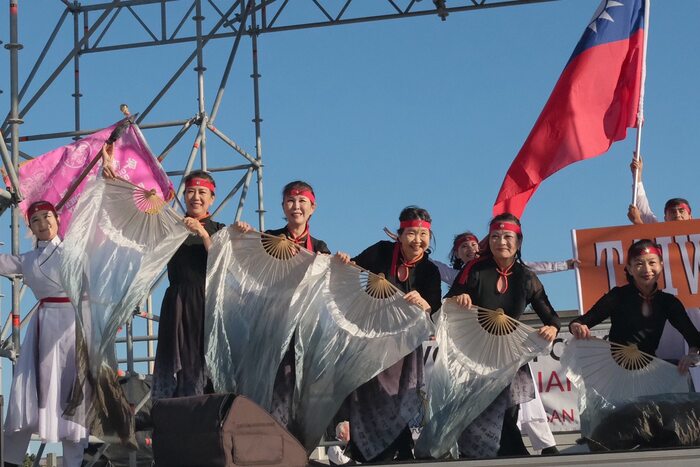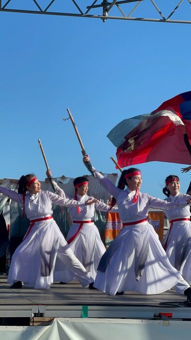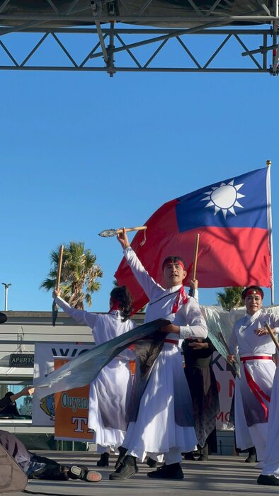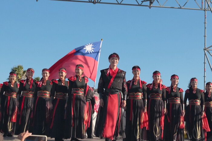 扛著超大國旗,每位團員不論台前幕後大家都發揮堅如磐石的團隊精神!驕傲的揚起下巴!燦爛的笑容整齊劃一的熱情呼喊