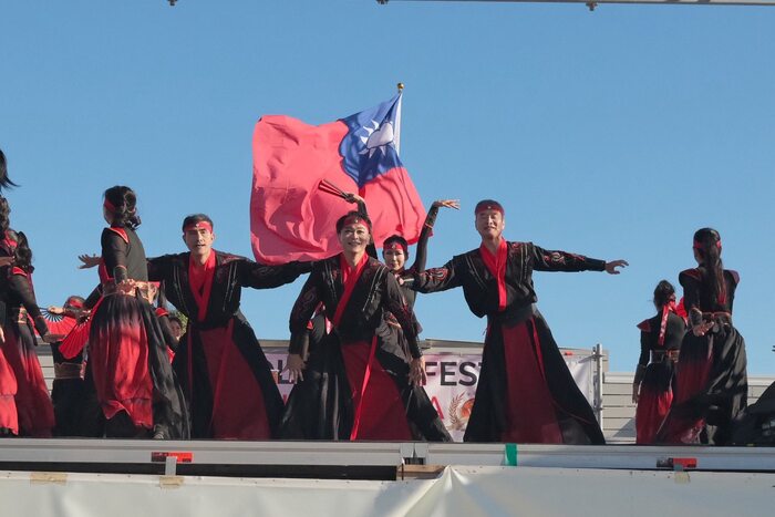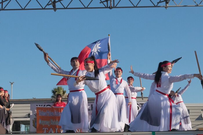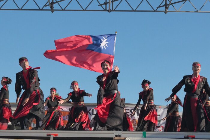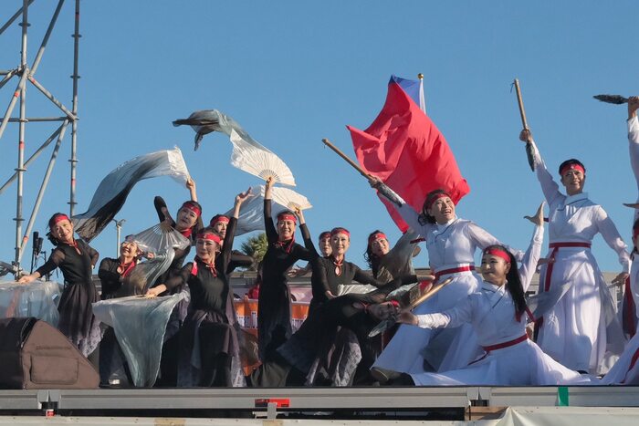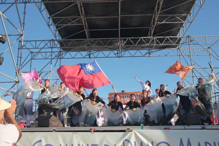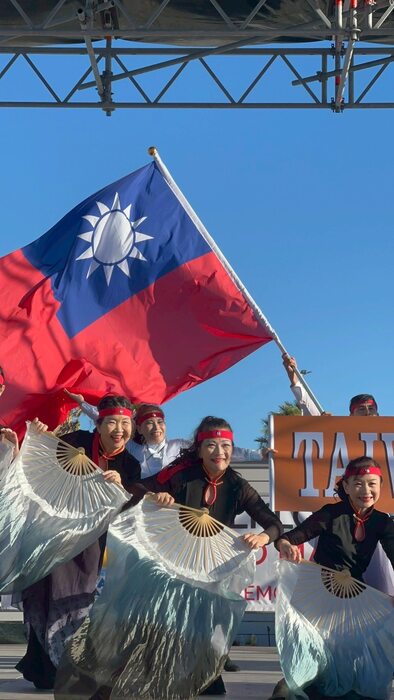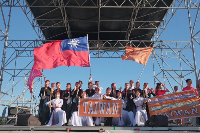 扛著超大國旗,每位團員不論台前幕後大家都發揮堅如磐石的團隊精神!驕傲的揚起下巴!燦爛的笑容整齊劃一的熱情呼喊